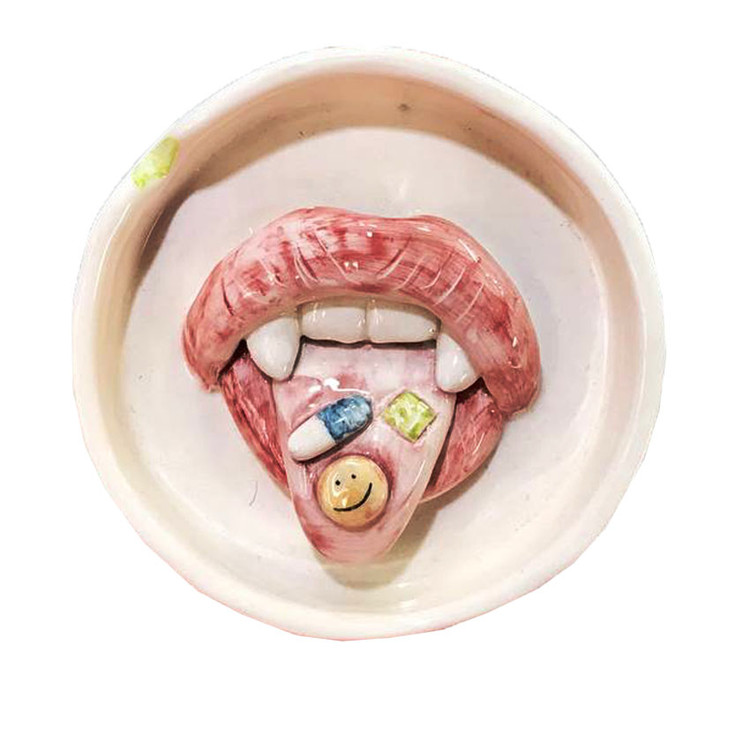 زیرسیگاری سرامیکی دست ساز طرح قرص و زبان